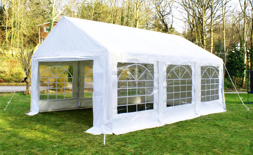 Классическая форма с двумя скатами крыши. Такие шатры стоят на свадьбах, корпоративах, ярмарках, стройках и даже военных сборах. Преимущества: