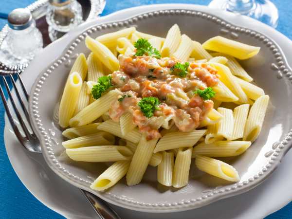 Макароны с лососем в сливочном соусе